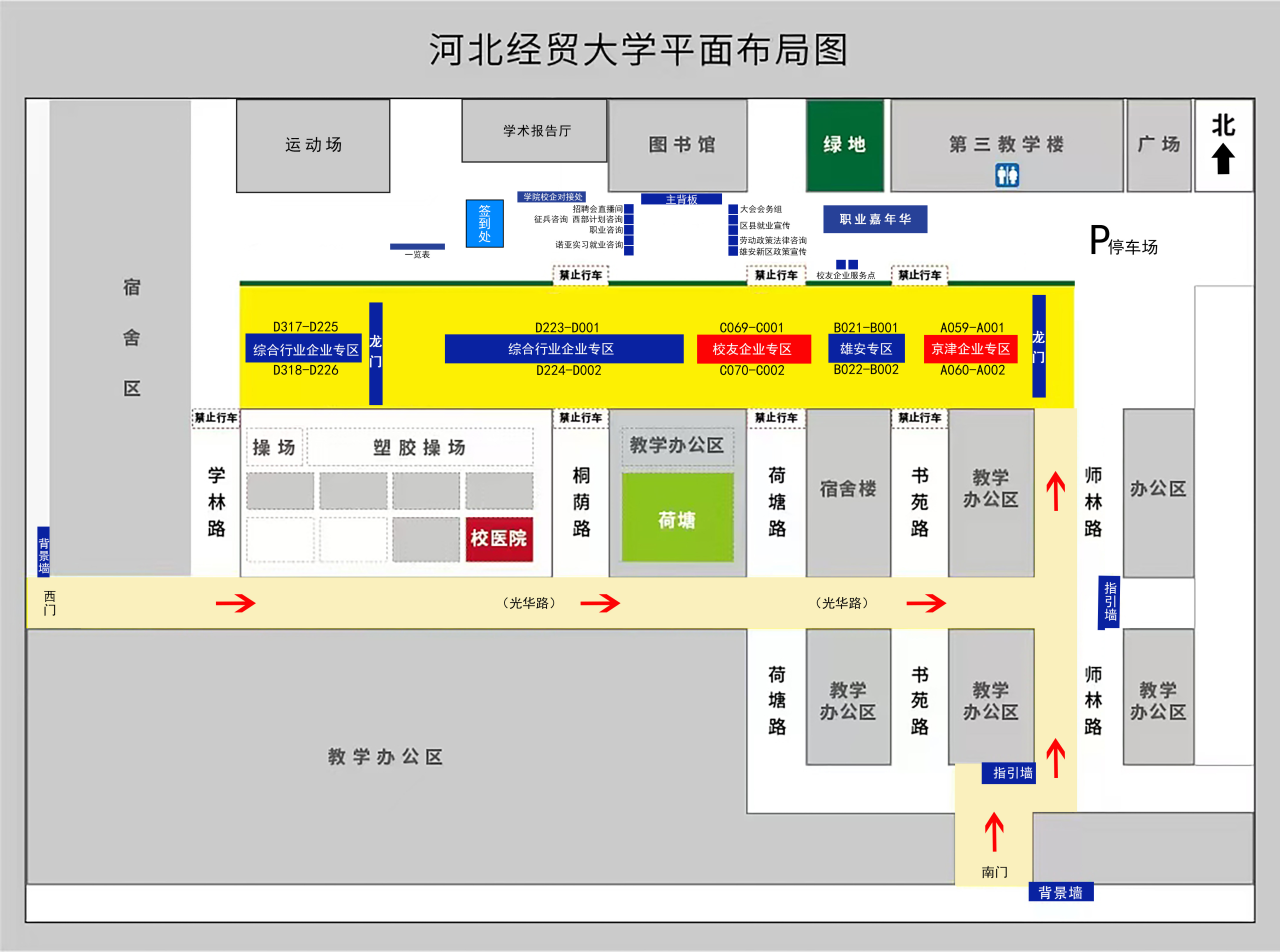 1.用人单位参会人员原则上不超过2人,参会单位请持加盖公章的《参会证》从学校南门、西门入校,并于8:30前到会场签到处报到,查询招聘展位号,领取参会资料。